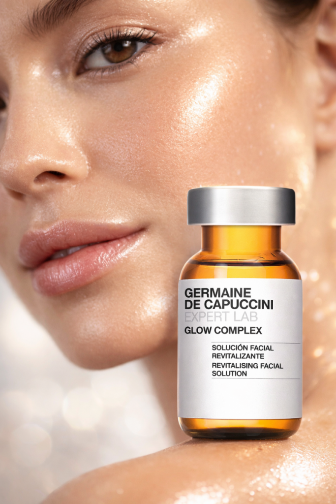 Tratamiento facial profesional que incluye aplicación con Dermapen de Glow Complex de Expert Lab by Germaine de Capuccini, una solución cosmecéutica altamente concentrada diseñada para devolverle a la piel su luz natural.