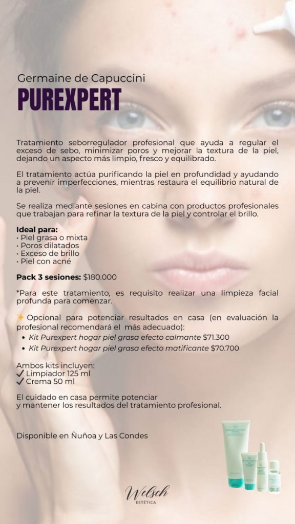 Purexpert es una línea profesional de tratamiento facial desarrollada por Germaine de Capuccini, enfocada en pieles con exceso de sebo o tendencia acneica.
